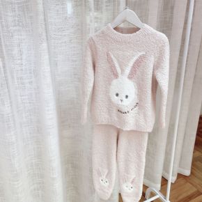秋冬款 日系可爱兔耳连帽女套装亲子睡衣 家居服亲子...