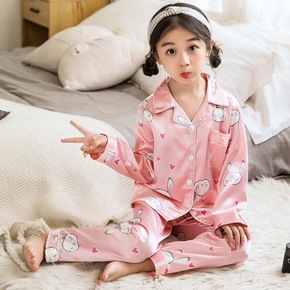 婴儿服夏季新款男女童空调服儿童睡衣长袖长裤仿冰丝春...