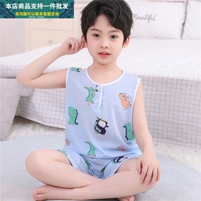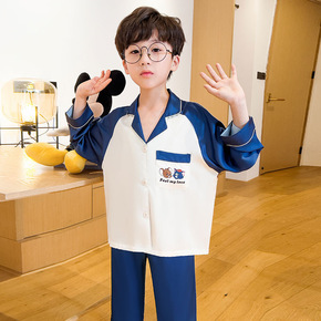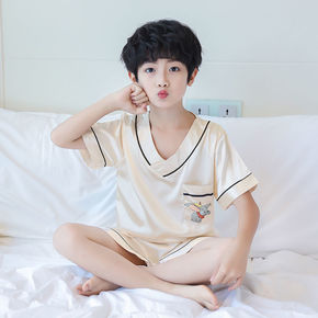 睡衣男童儿童夏季薄款睡衣空调服家居服冰丝透气中大童...