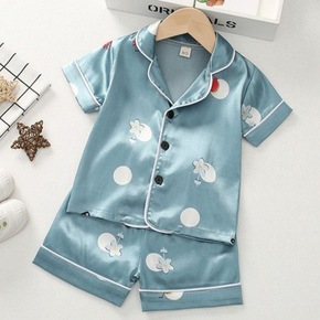 夏季短袖儿童睡衣绵绸男女童小孩空调服宝宝棉绸家居服...