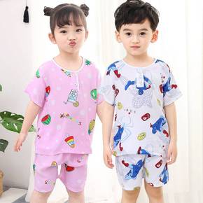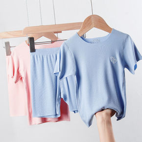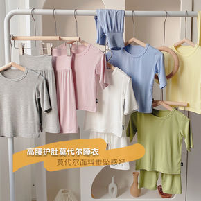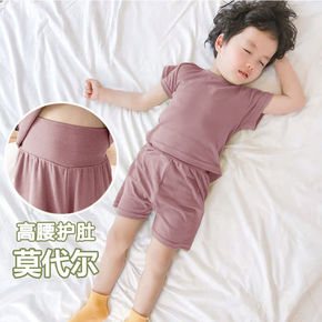 宝宝莫代尔睡衣儿童套装夏季薄款男女护肚脐短袖短裤婴...