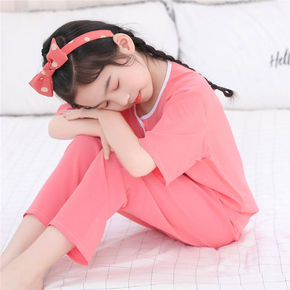 女孩睡衣莫代尔薄款夏季儿童中大童家居服套装女童宽松...
