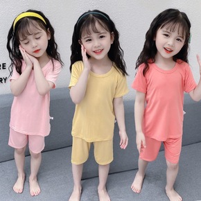 婴儿莫代尔睡衣儿童家居服套装夏季薄款童七分袖男女童...