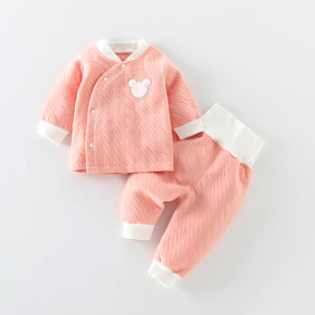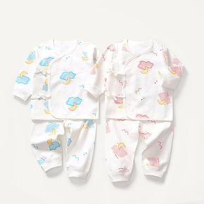 宝宝纯棉无骨内衣套装新生儿衣服高腰护肚0-1岁春秋...