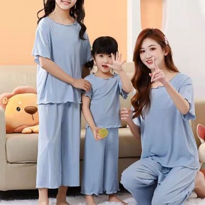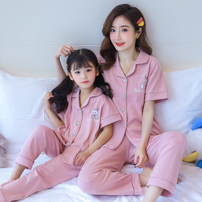 亲子睡衣母女春夏季棉质短袖长裤薄款一家三口儿童男士...
