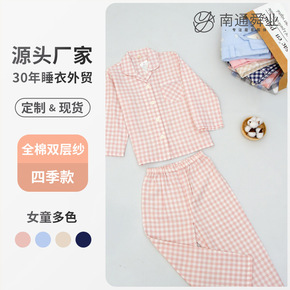 儿童睡衣棉双层纱布春秋夏季格子男亲子款无印大女童小...