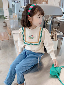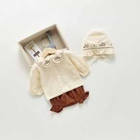 韩版婴幼童秋季套装女宝宝翻领刺绣上衣+裤子+帽子三...