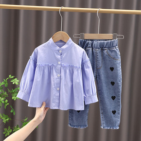 女童洋气秋装套装2021新款韩版潮童装女宝宝衬衣牛...