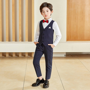 春秋儿童西装礼服 男童长袖衬衣马甲长裤套装男宝宝绅...