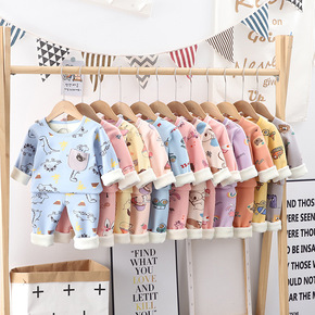 秋冬款婴幼儿套装棉衣舒绒纯棉夹棉厚款保暖内衣宝宝睡...