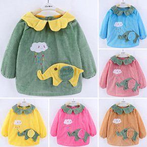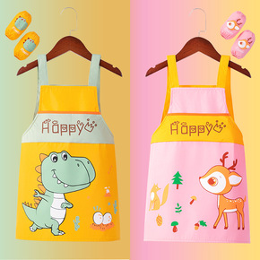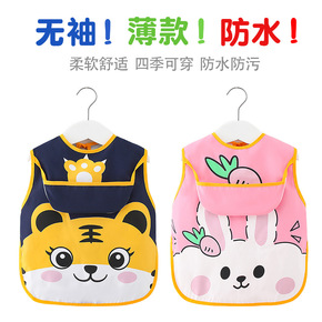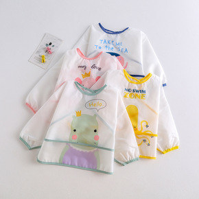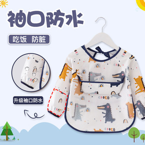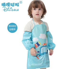 儿童卡通防水围裙袖套中长款画画衣男女宝宝罩衣幼儿园...