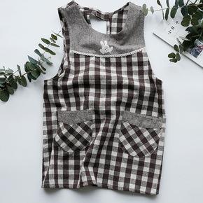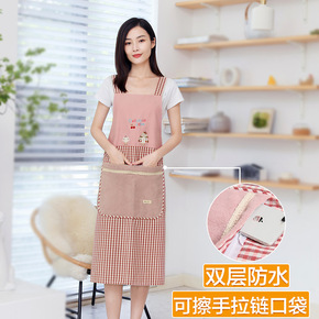 棉布韩版无袖拉链围裙女家用透气厨房做饭成人家用围腰...