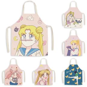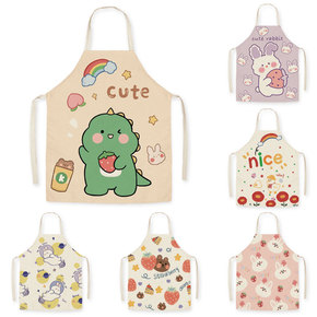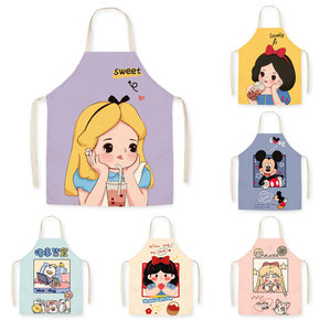 亚麻工作围裙卡通可爱公主图案印花成人亲子无袖围腰家...