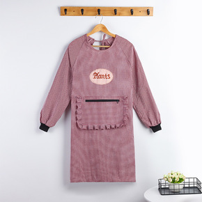 擦手围裙家用厨房罩衣女时尚工作服长袖大人韩版防水防...