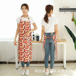 成人卡通双肩背带围裙厨房防污水防油无袖罩衣广告印字...