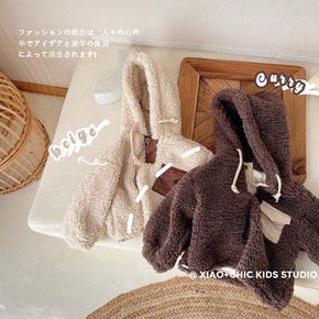 毛绒绒~敲韩范儿童羊羔毛连帽加绒卫衣冬季宝宝外穿上...
