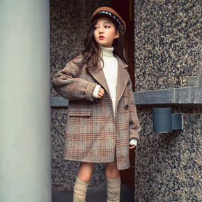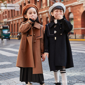3QR女童双面呢大衣秋冬新款洋气西服领呢子儿童毛呢...