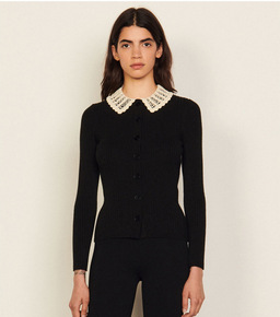 miu家2022新款娃娃领长袖开衫 早秋蝴蝶结圆领...