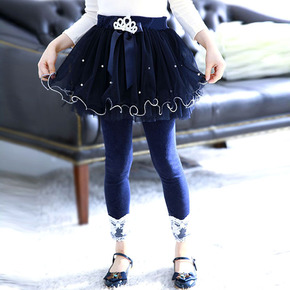 D1212#冬季新品加厚羊羔绒亚光棉女童裤侧边网纱...