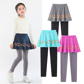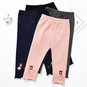 新品可开档女童长裤秋季卡通绣花小熊花朵打底裤宝宝外...