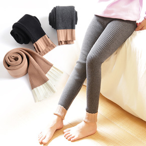 女童打底裤 2020秋冬韩版加厚羊毛线绒坑条裤子...