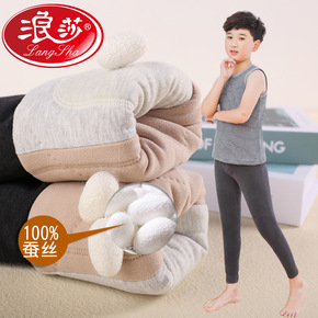 浪莎男童加绒打底裤内穿中大童冬季加厚保暖裤儿童蚕丝...