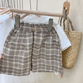 2021夏季新款韩国童装女童格子短裤棉布裤西装裤...