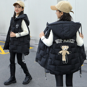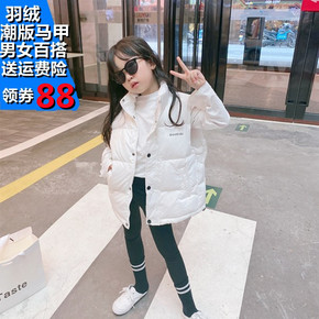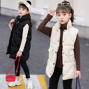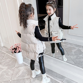 儿童羽绒棉马甲冬季2021新款女童洋气外穿中长款背...