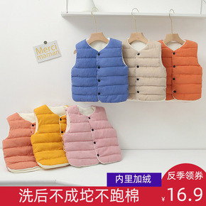 秋冬新款儿童羽绒棉马甲男女童保暖背心宝宝加厚婴幼连...