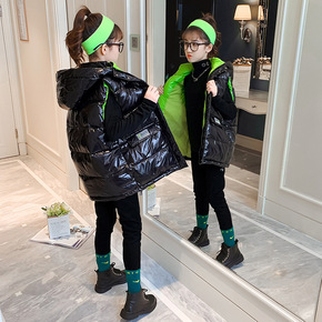 厂家直销马甲女童加厚连帽羽绒马夹儿童秋冬中长款背心...