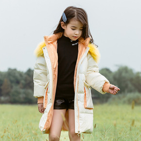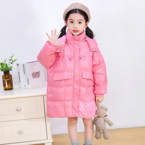 爆款儿童女童羽绒服中长款中小童女孩洋气帽子可拆加厚...
