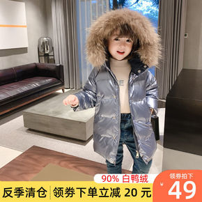 反季韩版男童儿童羽绒服宝宝女童中长款中大童洋气毛领...