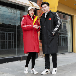 中国队冬训棉大衣三条杠中长款男士棉衣加绒加厚儿童国...
