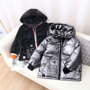 亮面免洗儿童羽绒服男童连帽短款白鸭绒外套秋冬保暖上...