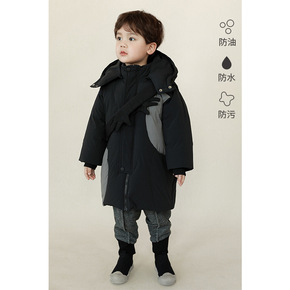 吾里卜一儿童保暖羽绒服中长款男童冬装连帽外套宝宝上...