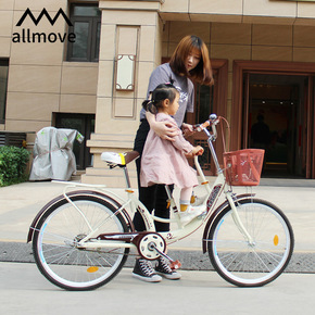 自行车女亲子母子轻便单车通勤普通24寸可带娃接送小...