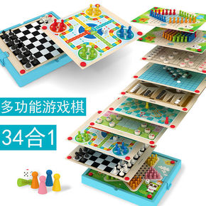 围棋棋盘多合一跳棋飞行棋五子棋斗兽棋游戏儿童学生木...