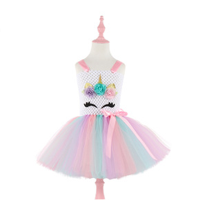 跨境童装 新款女童独角兽连衣裙夏儿童手工网纱公主裙...
