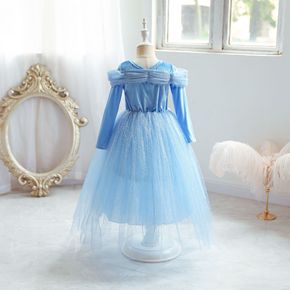 欧美跨境童装长袖灰姑娘公主裙蝴蝶网纱连衣裙女童冰雪...