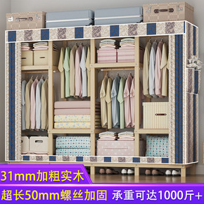 简易衣柜结实耐用实木衣柜家用卧室出租房用布衣柜组装...