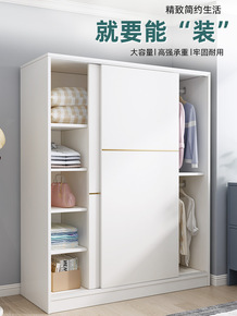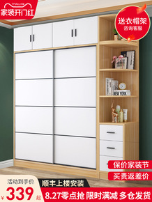 推拉门衣柜家用卧室实木小户型衣橱出租房用简约现代儿...