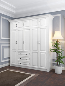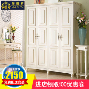 美式卧室橡木白色地中海衣柜实木欧式整体四门大衣柜儿...