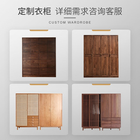 北欧全实木衣柜推拉门黑胡桃木衣橱樱桃木卧室日式...