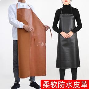 防水防油皮革围裙无袖男女罩衣大人家用厨房时尚软皮耐...
