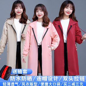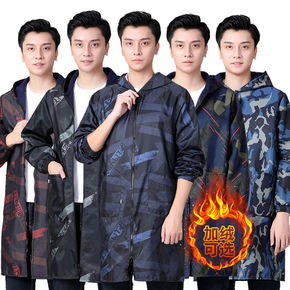 秋季加长款罩衣防水加绒时尚成人女围裙双头拉链立领保...