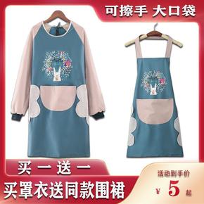 时尚长袖围裙女可爱家用厨房网红防水防油罩衣成人上班...