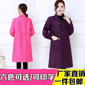 时尚修身罩衣厨房围裙成人女中长款蓝大褂秋冬单层透气...