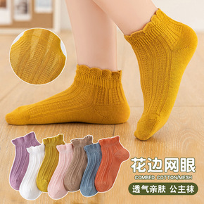 女童袜子全棉批发春秋薄款夏网眼透气纯棉中筒韩国儿童...