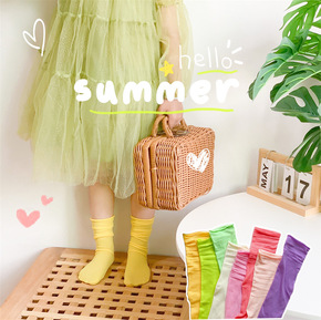 夏季薄款彩色移圈镂空网眼儿童中筒袜单色简约童袜男女...