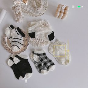 夏季新款黑白拼色网眼儿童船袜 薄款透气格子横条潮童...